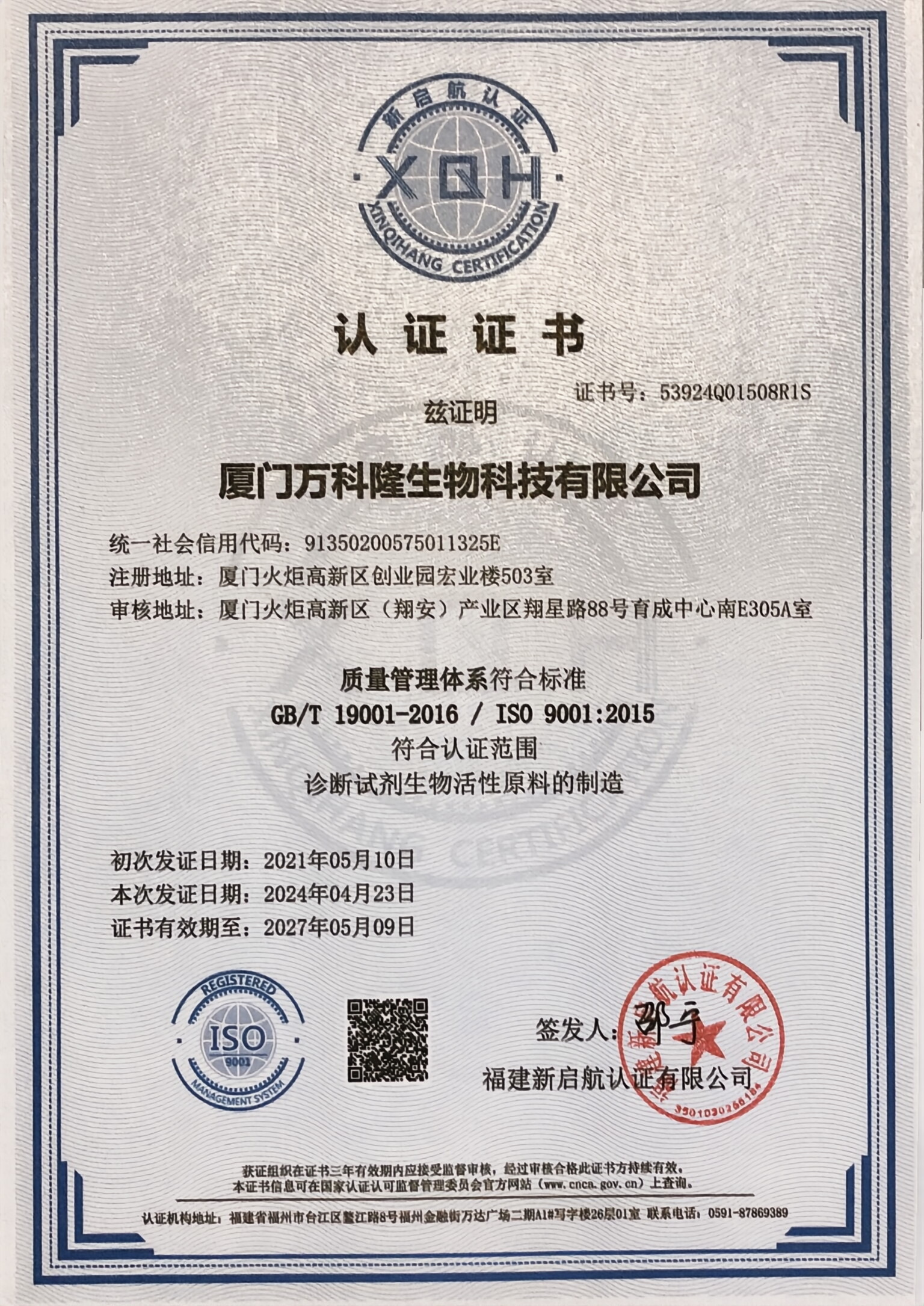 認(rèn)證證書