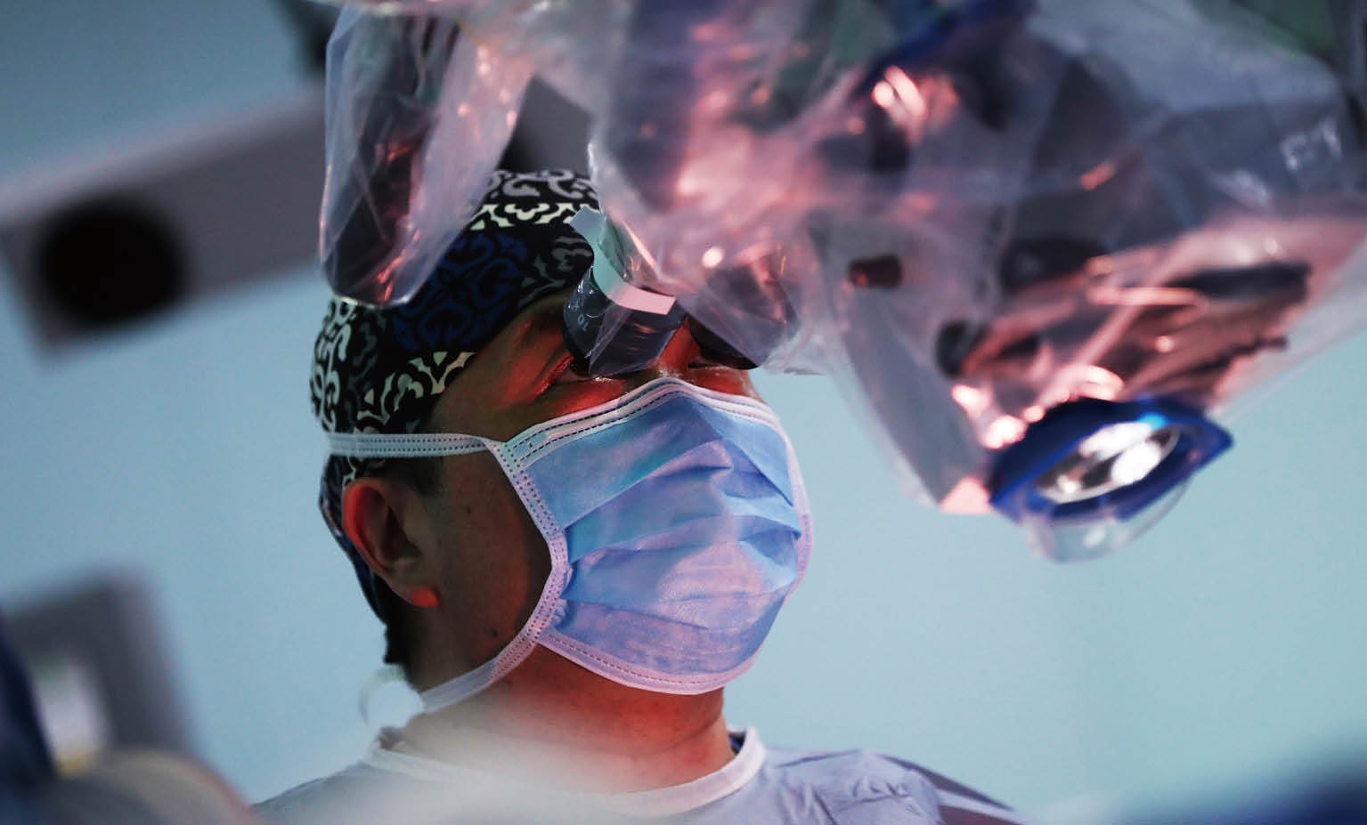 分子可視化手術(shù)導(dǎo)航系統(tǒng),使“不可見(jiàn)”的病理診斷數(shù)據(jù)真正“ 可見(jiàn)”,實(shí)現(xiàn)了針對(duì)神經(jīng)腫瘤分子級(jí)別的切除。圖為毛穎教授手術(shù)